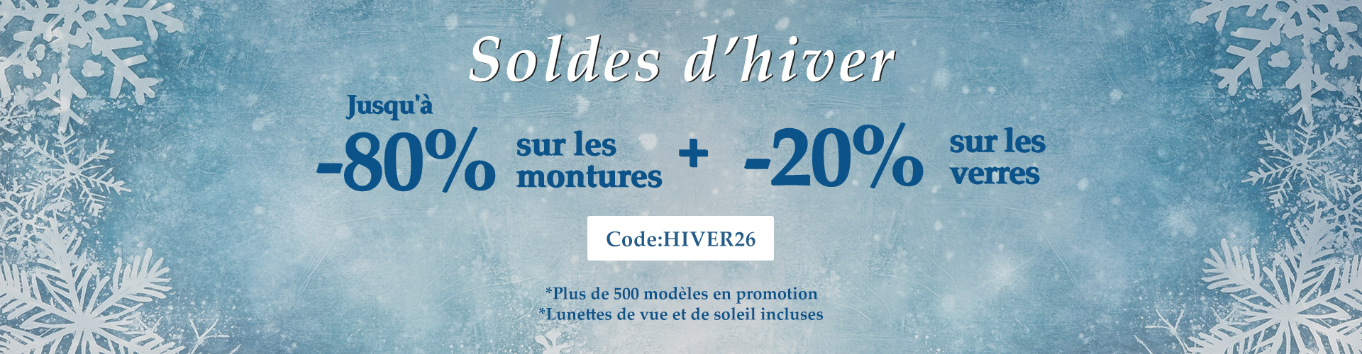 ❄Soldes d'hiver|Jusqu'a -80% sur les montures & -20 % sur les verres|Code: HIVER26