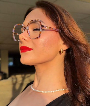 Monture carrée rétro pour flatter plusieurs formes de visage.